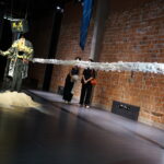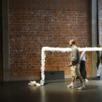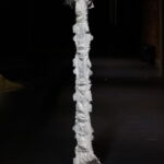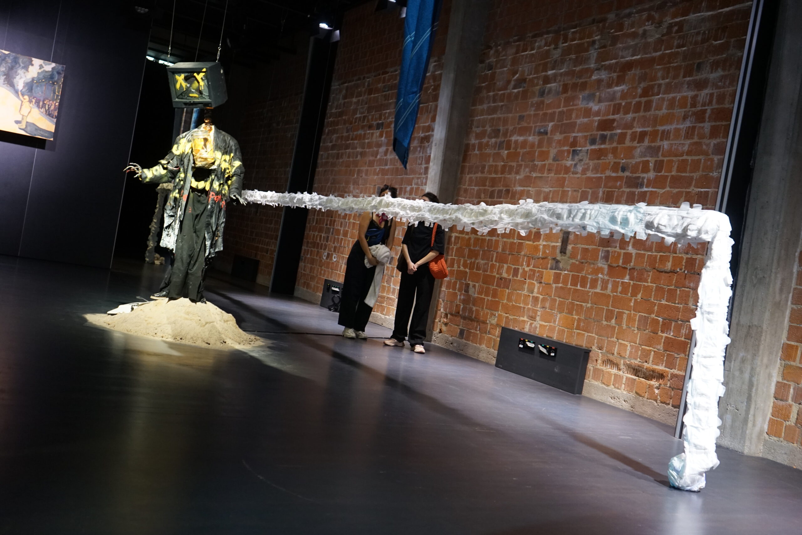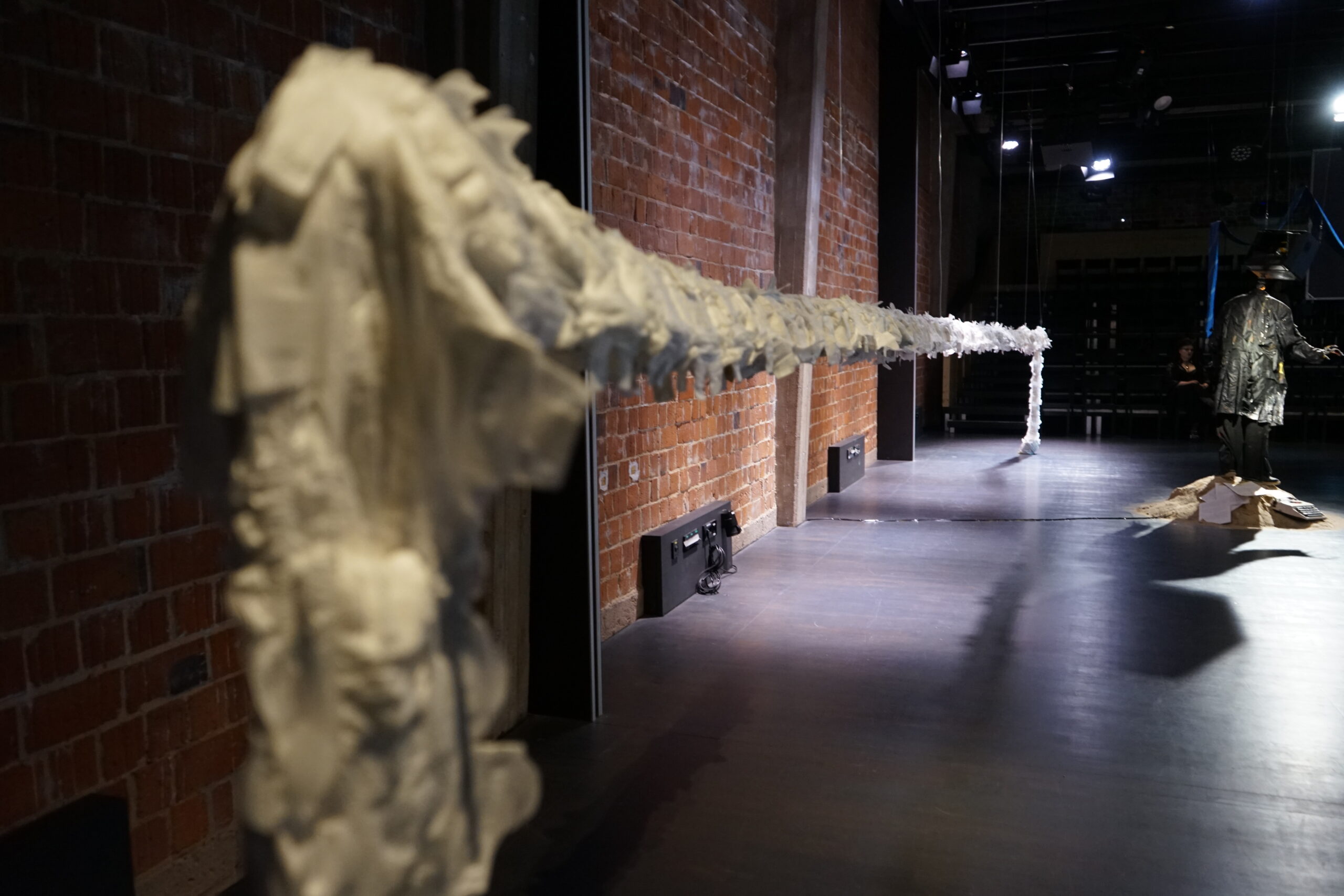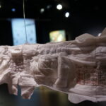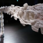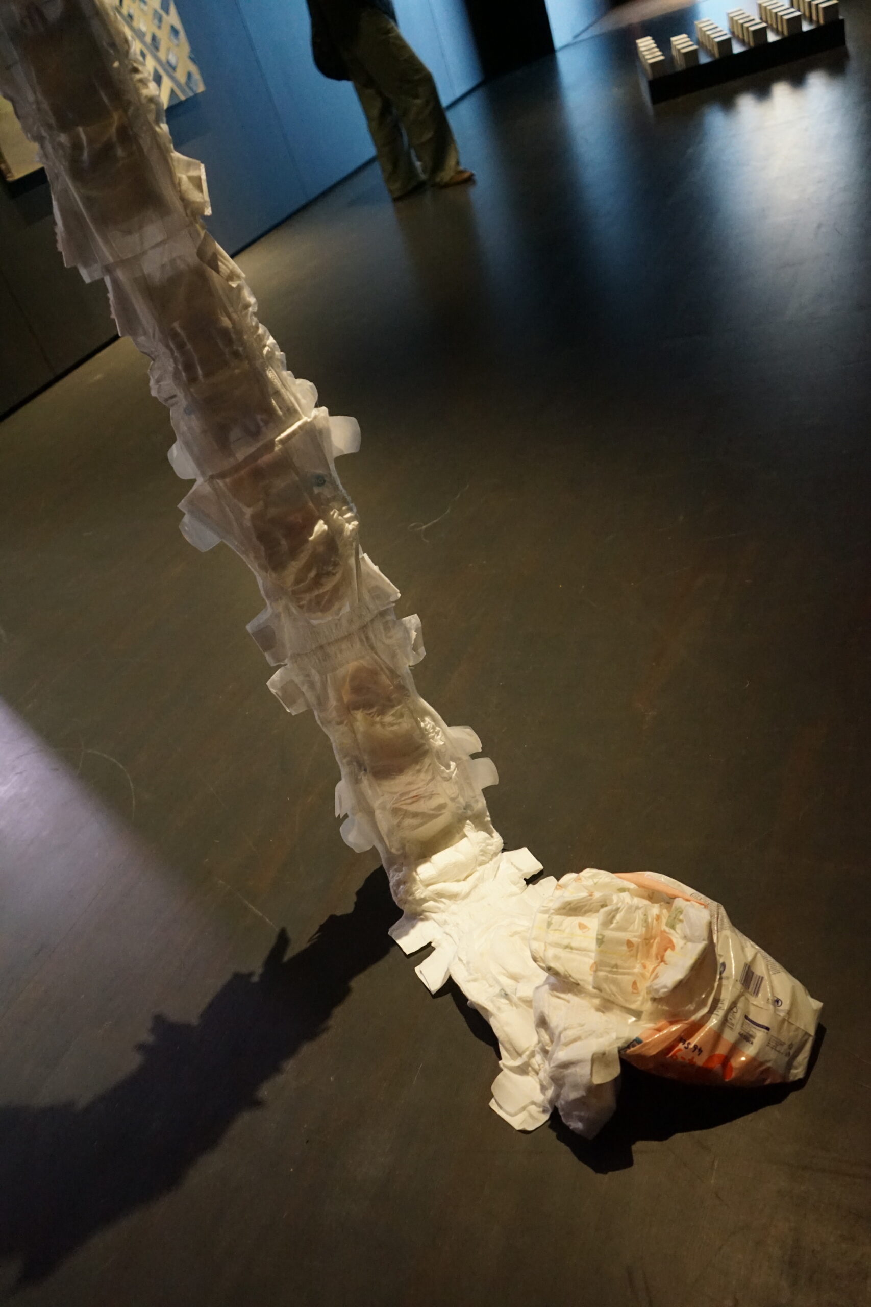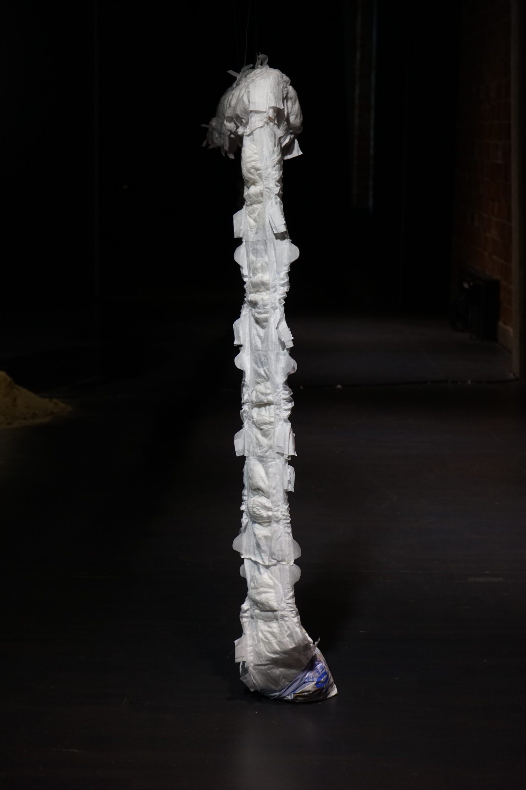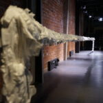 (DE) „Wo Wurzeln schlagen?“ — Eine Frage, die sich beim Neuanfang als alleinerziehende Migrantin nach der Geburt eines Kindes stellt. Bestickt, zahlreich, ordentlich aufgereiht und schwebend spiegeln die Windeln den Kontrast zwischen einer überwältigenden Realität und den hoffnungsvollen, träumerischen Vorstellungen einer besseren Zukunft wider.